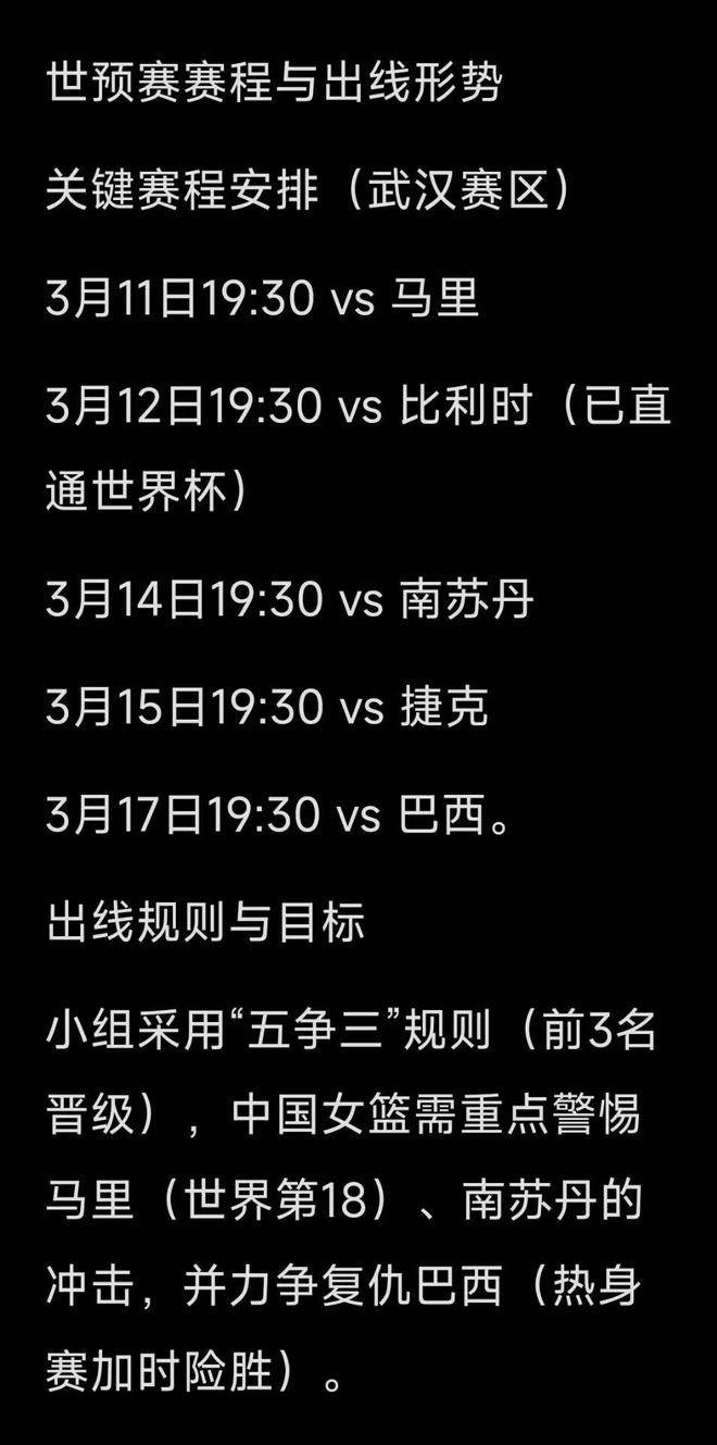 劉禹彤落選,李夢缺席!世界杯預選賽3月11日:中國女籃VS馬里