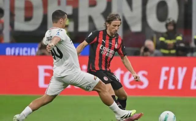 眼看常規時間90分鐘就要到了,場上比分仍是0-0,如果以這個比分結束,AC米蘭爭冠將徹底無望,并且爭四前景也將蒙上陰影。關鍵時刻,老將莫德里奇站了出來,左路拿球傳入禁區,德溫特頭球打在帕夫洛維奇身上反彈進了球門。AC米蘭1-0絕殺克雷莫內塞。